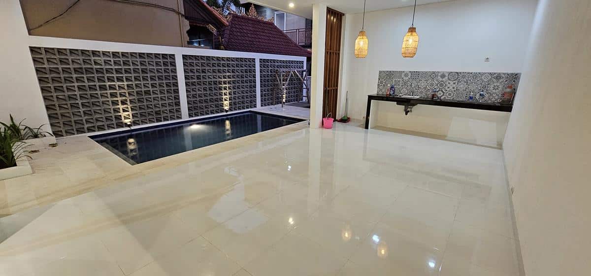 Located in Seminyak this 2-bedroom villa has a living room with lots of natural light and a great swimming pool. Equally important is that the villa is fenced around and has a one entrance gate.