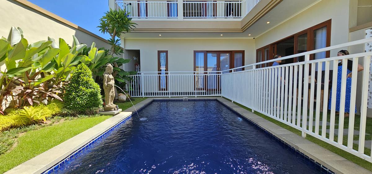 Located in Sanur this 3-bedroom villa has a living room with lots of natural light and a great swimming pool. Equally important is that the villa is fenced around and has a one entrance gate.