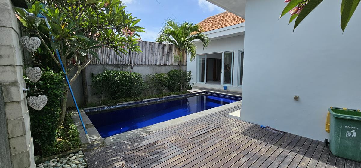 Located in Canggu this 3-bedroom villa has a living room with lots of natural light and a great swimming pool. Equally important is that the villa is fenced around and has a one entrance gate.