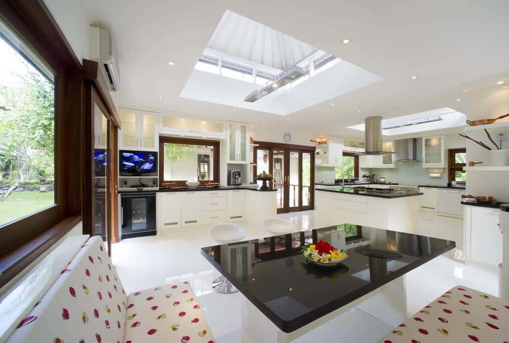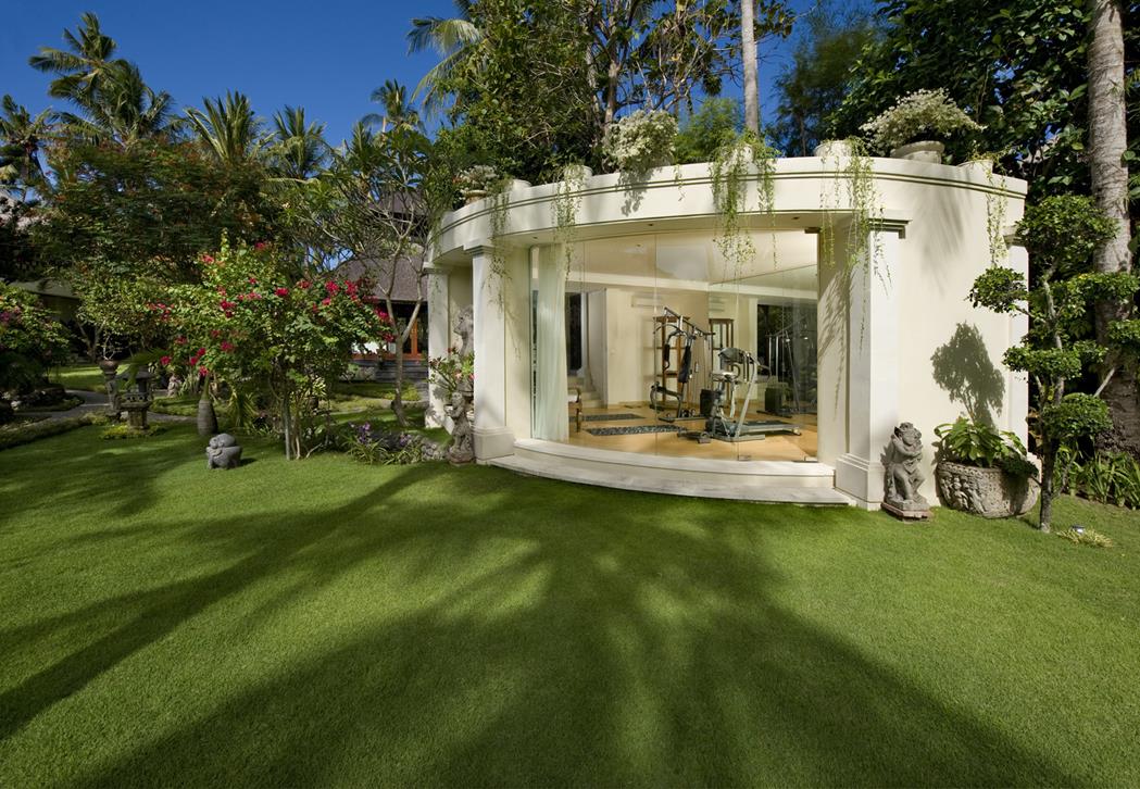 It is comprised of a main two-storey house furnished with Indonesian antiques, a contemporary styled two-storey guest wing, a traditional Balinese Wantilan living pavilion, a state-of-the-art gourmet kitchen, an indoor/outdoor dining room, a gym, a pool house, and a 17-metre freeform swimming pool.