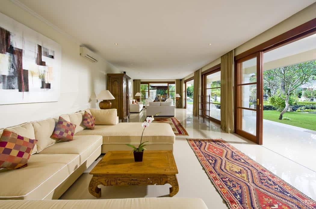Resting on 3.000 square metres of land in a magnificent tropical garden, this luxury Bali rental villa can sleep up to 12 guests.