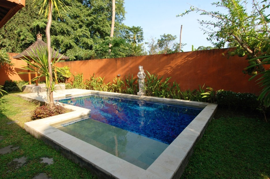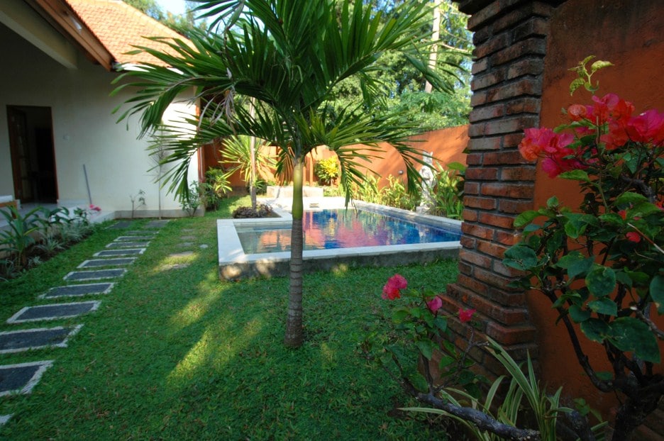 Cozy 3-bedroom Bali Long Term Rental Villa Bridget in Sanur. This yearly rental villa comes fully furnished with swimming pool, garden and is resting on 300m2 land. The villa comes with equipped kitchen.
