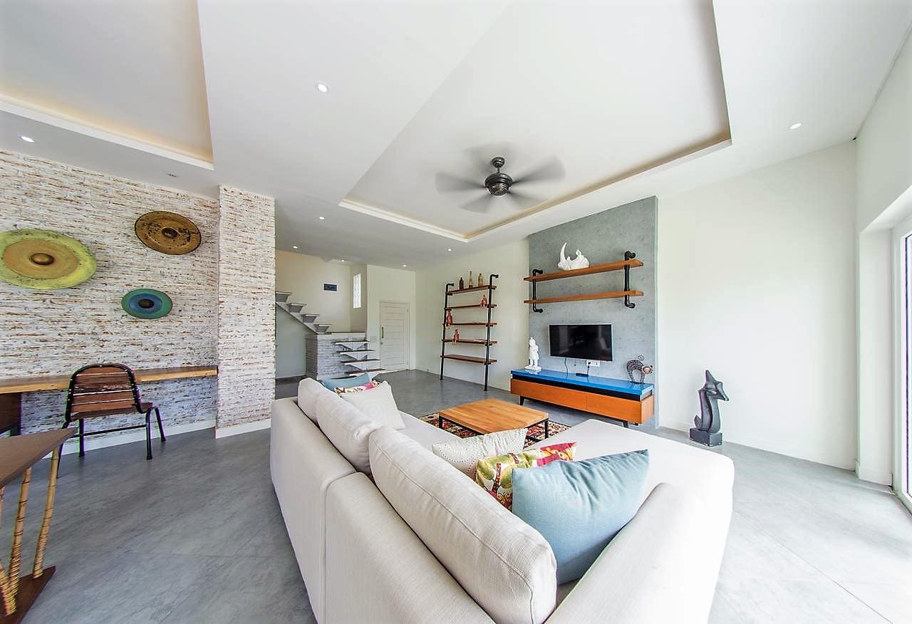 Modern light 3-bedroom Bali Long Term Rental Villa Everleigh in Balangan. This yearly rental villa comes fully furnished with a swimming pool, big garden and is resting on 250m2 land.
