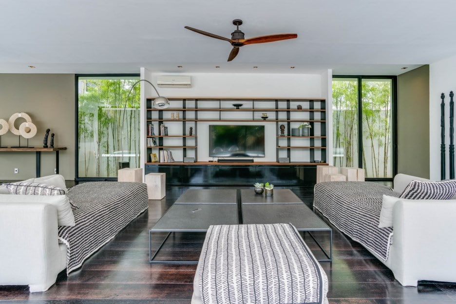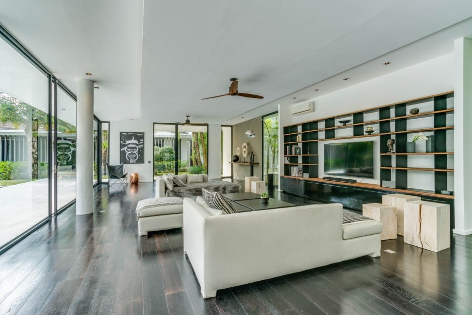 For Sale spacious high end 5-bedroom Villa Emerie in Canggu. This 5-bedroom Villa for sale has an enclosed living room, is furnished and has 2 swimming pools.