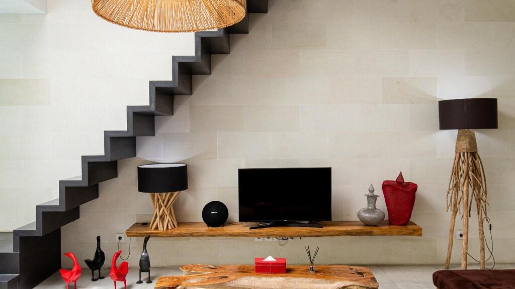 Additionally there are a dining- and living area and the laundry area can be found next to the kitchen. On entering the villa you will find a light and spacious living room. Living room and dining room are located next to the pool terrace and swimming pool. Also the villa has a spacious dining table with space for 6 people. All bedrooms have access to WiFi.