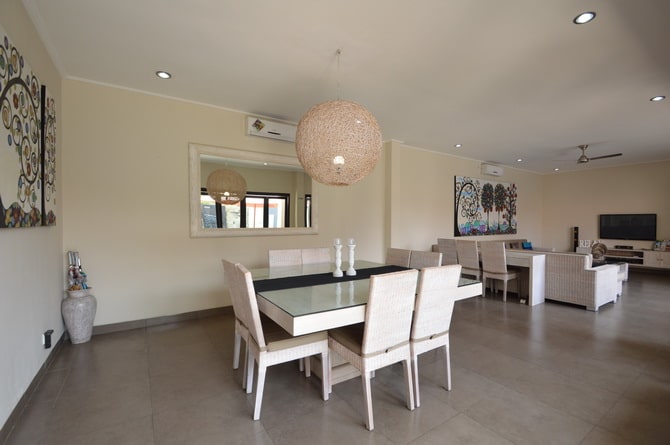Located in Kerobokan this 5 -bedroom villa has a living room with lots of natural light and a large swimming pool. Therefore it’s the perfect place to relax and have a great time. Equally important is that the villa is fenced around and has one entrance gate. the villa has air conditionings in all 5 bedrooms.