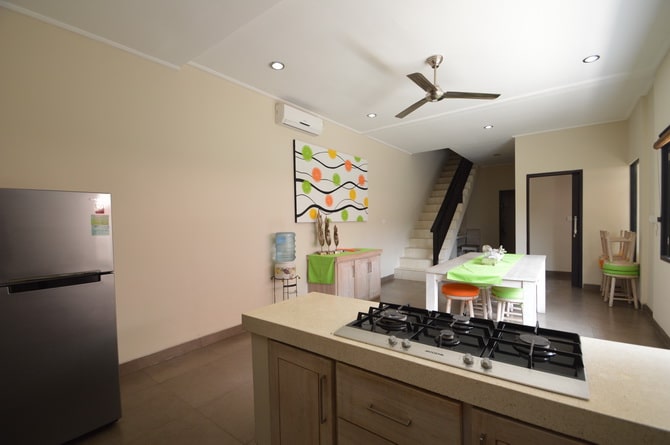 Long Term Rental Villa Cleo has an enclosed living room, is furnished, has a swimming pool and is built on 350 m2 land. Also this Yearly Rental Villa has 2 floors and has a fully equipped kitchen. Furthermore this villa is modern and buit according to western standards with almost an Ibiza style.