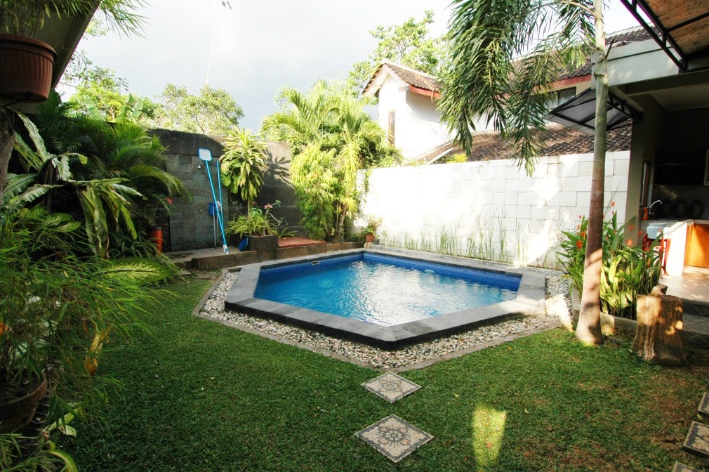 Located in Kerobokan this 2 -bedroom villa has a living room with lots of natural light and a great swimming pool. Equally important is that the villa is fenced around and has a one entrance gate.