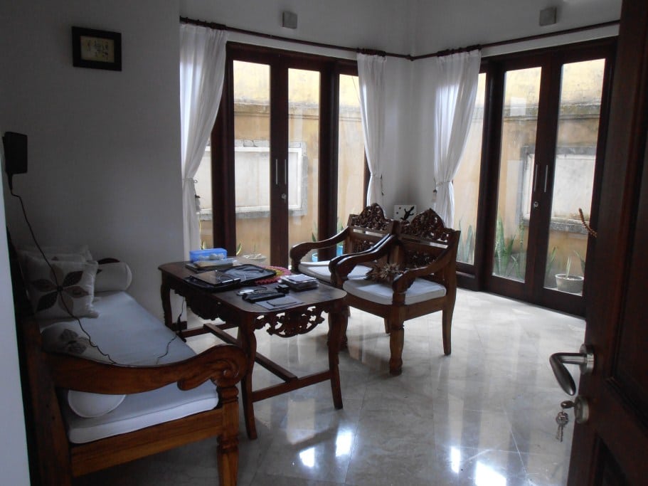 Located in Sanur this 2-bedroom villa has a living room with lots of natural light.