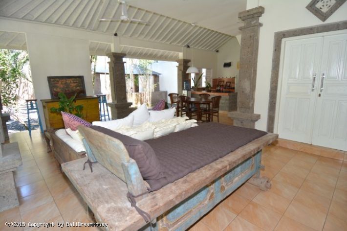 Villa Lacey is a nice 3-bedroom Long Term Rental Villa in Umalas. This yearly rental villa comes fully furnished with swimming pool and is built on 700 m2 land. The villa has one floor and comes complete with fully equipped kitchen and many handy conveniences. Additionaly there are the dining- and living area with large flat screen TV and also the laundry area is just off of the kitchen.