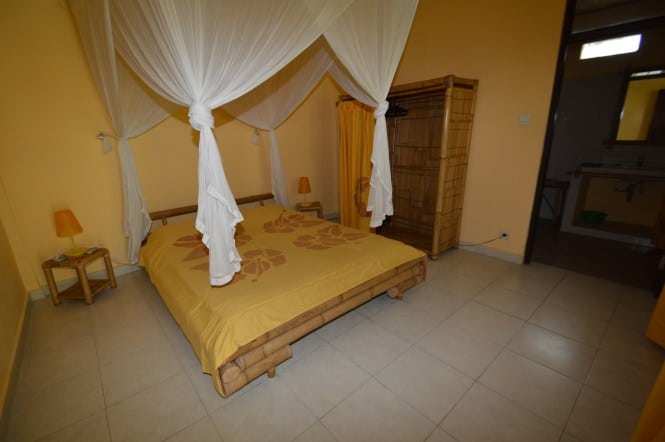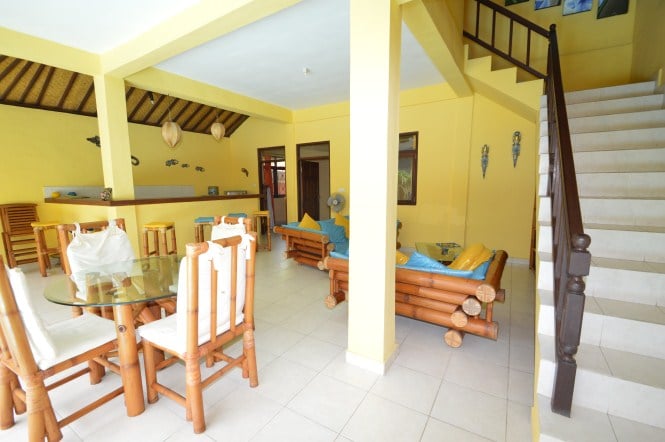 What makes this villa special are the large open such as the large open living room and the upstairs area. Also the garden offers a lot of space to relax or organize a barbecue. The villa is painted in romantic dark yellow colors adding additional atmosphere to this property.