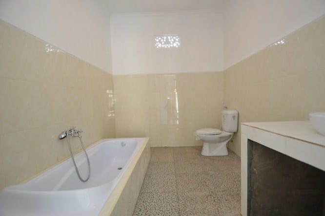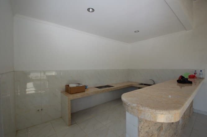 Long Term Rental Villa Makasar in Umalas has 2 bedrooms, is unfurnished and is built on 450m2 land. This Yearly Rental Villa has 1 floor and an open living room. Additionally there are a dining- and living area and the laundry area can be found next to the kitchen. On entering the villa you will find a light and spacious living room. Living- and dining room open to the pool terrace and the dining room. All bedrooms have WiFi accessible throughout.