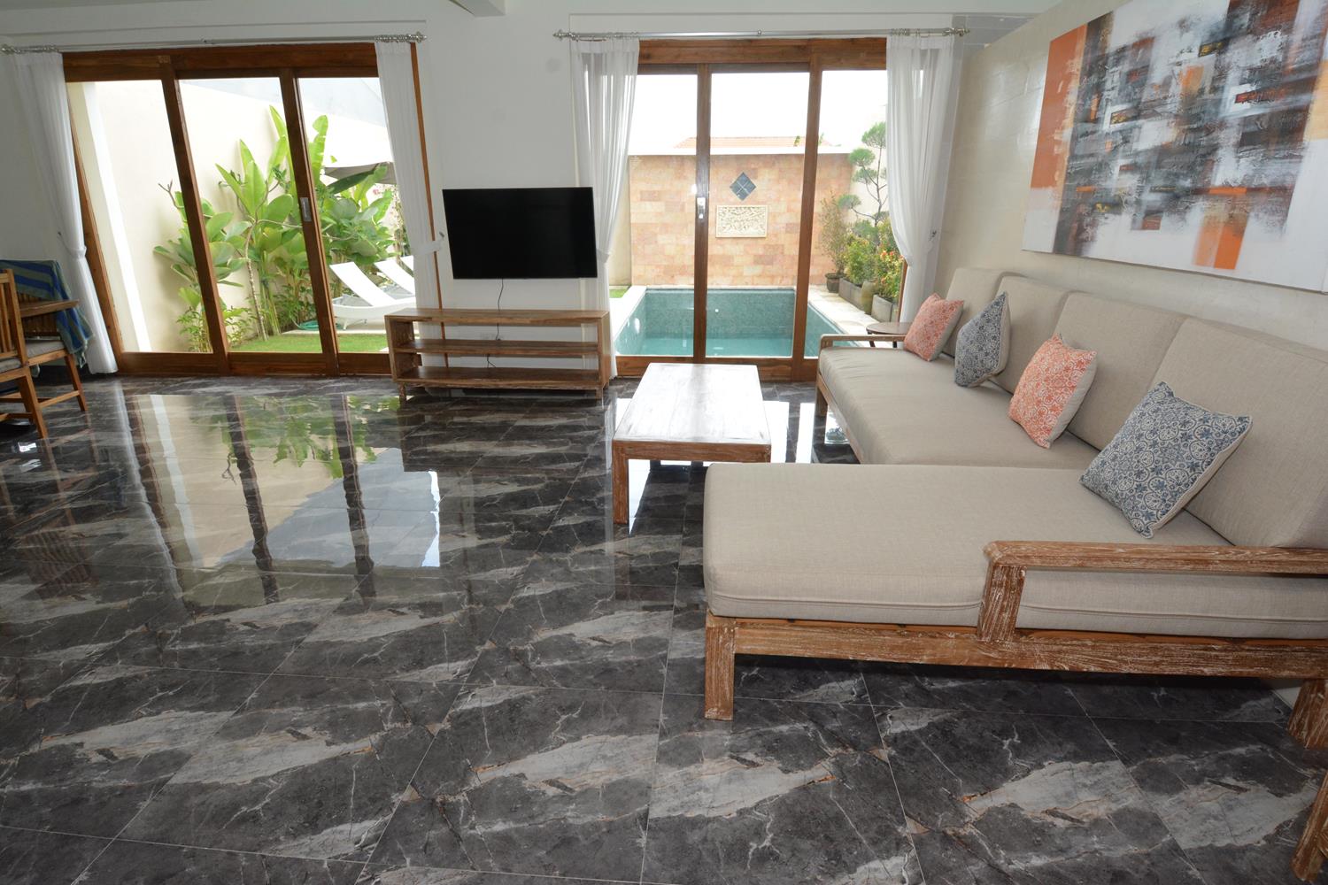 Located in Canggu this 4 -bedroom villa has a living room with lots of natural light and a great swimming pool. Equally important is that the villa is fenced around and has a one entrance gate.