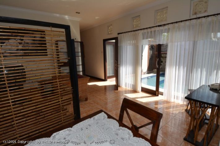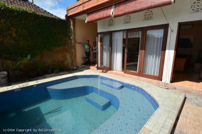Located in Sanur this 3 -bedroom villa has a living room with lots of natural light and a great swimming pool. Equally important is that the villa is fenced around and has a one entrance gate.
