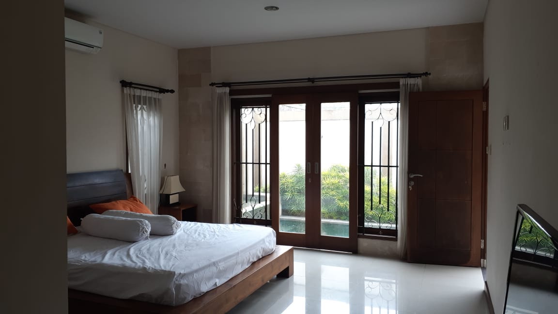 Located in Kerobokan this 2 -bedroom villa has a living room with lots of natural light and a great swimming pool. Equally important is that the villa is fenced around and has a one entrance gate.