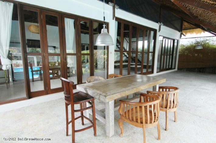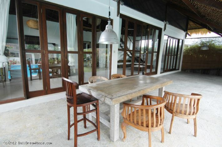 Also there is a spacious patio with a dining table for those who prefer to eat outside or simply want to relax by the large swimming pool.