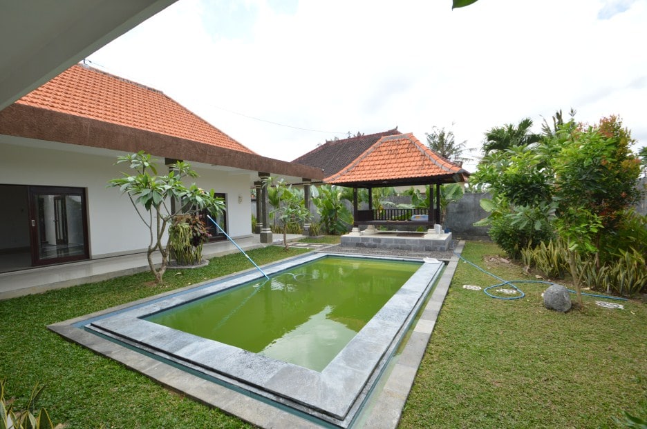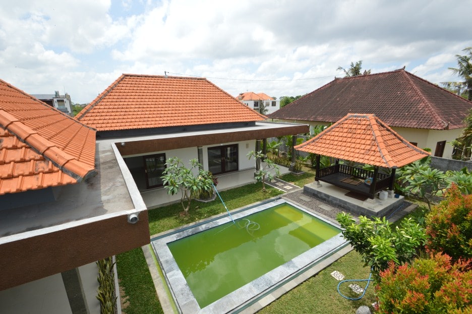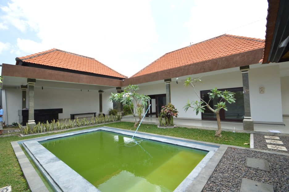 Located in Canggu this 2 -bedroom villa has a living room with lots of natural light and a large swimming pool. Therefore it’s the perfect place to relax and have a great time. Equally important is that the villa is fenced around and has one entrance gate. the villa has air conditionings in all 2 bedrooms.