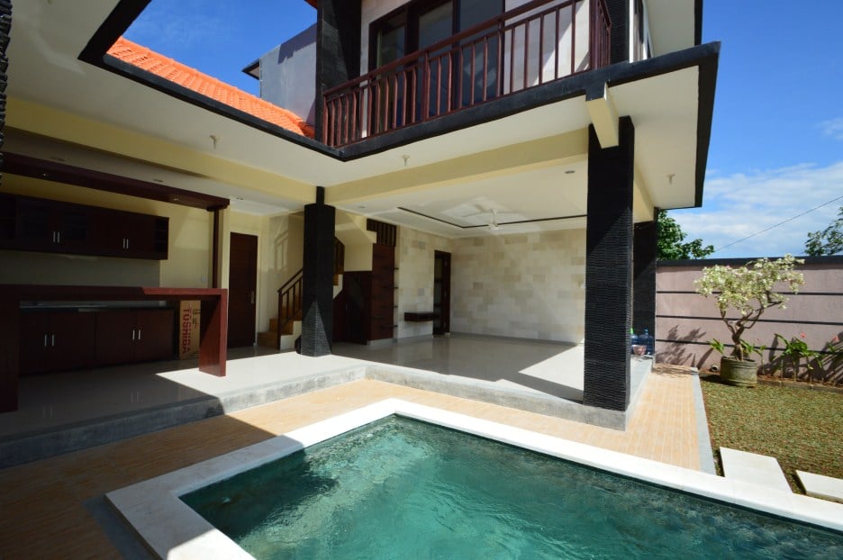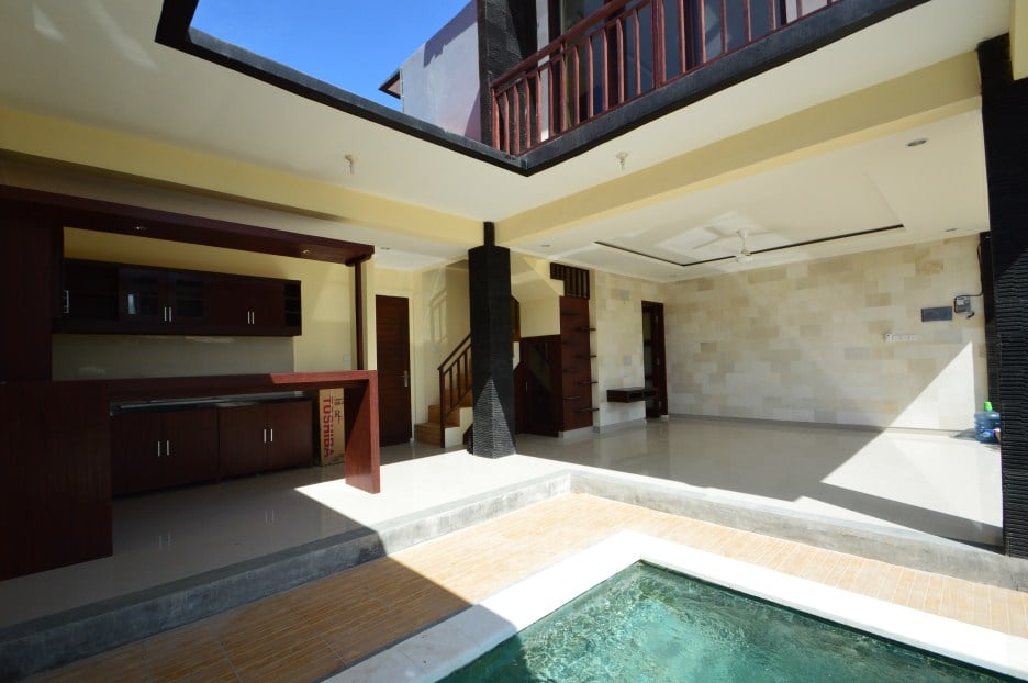 Located in Canggu this 2-bedroom villa has a living room with lots of natural light and a large swimming pool. Therefore it’s the perfect place to relax and have a great time. Equally important is that the villa is fenced around and has one entrance gate. the villa has air conditionings in all 2 bedrooms.