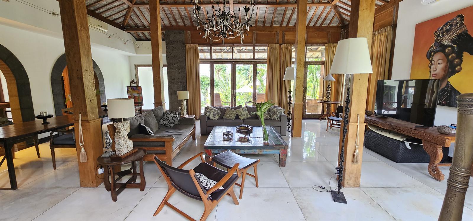 This fully furnished home blends classical Joglo architecture with top-of-the-line amenities. Featuring enclosed living, a modern, fully equipped kitchen, and 4 air-conditioning units, it offers maximum comfort.